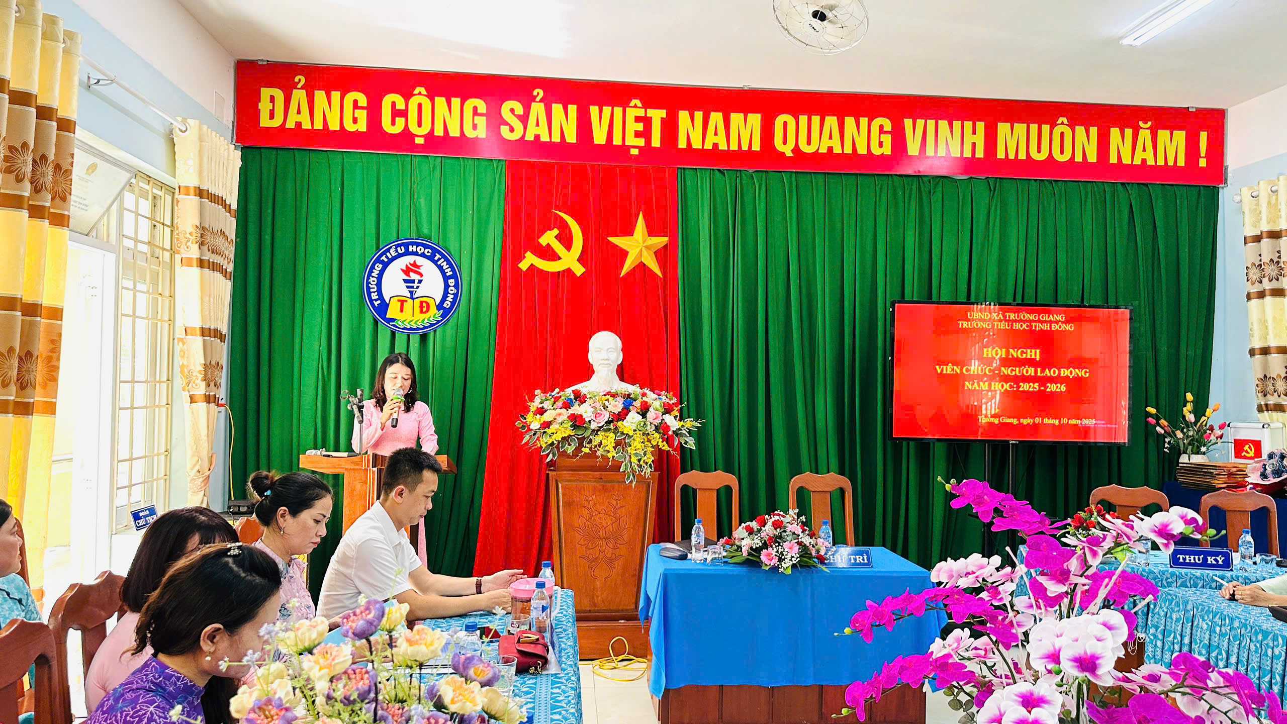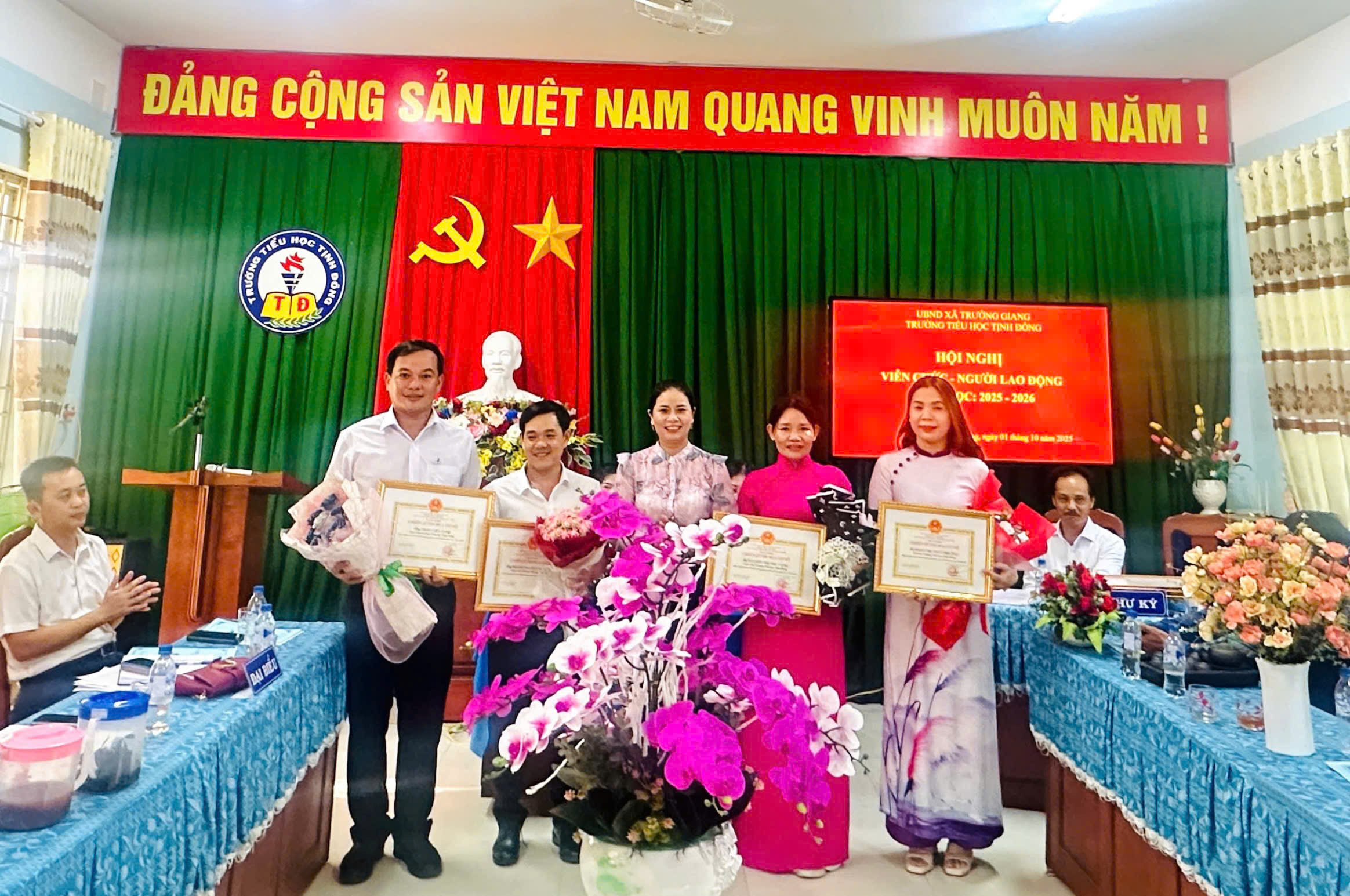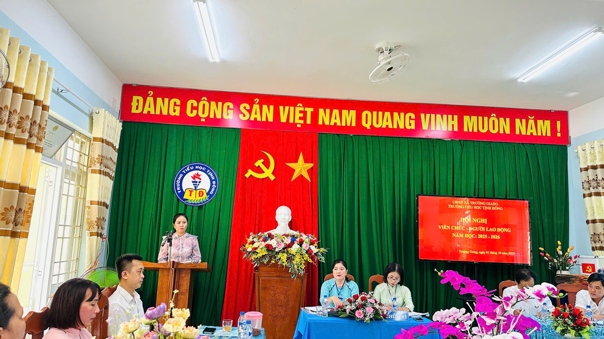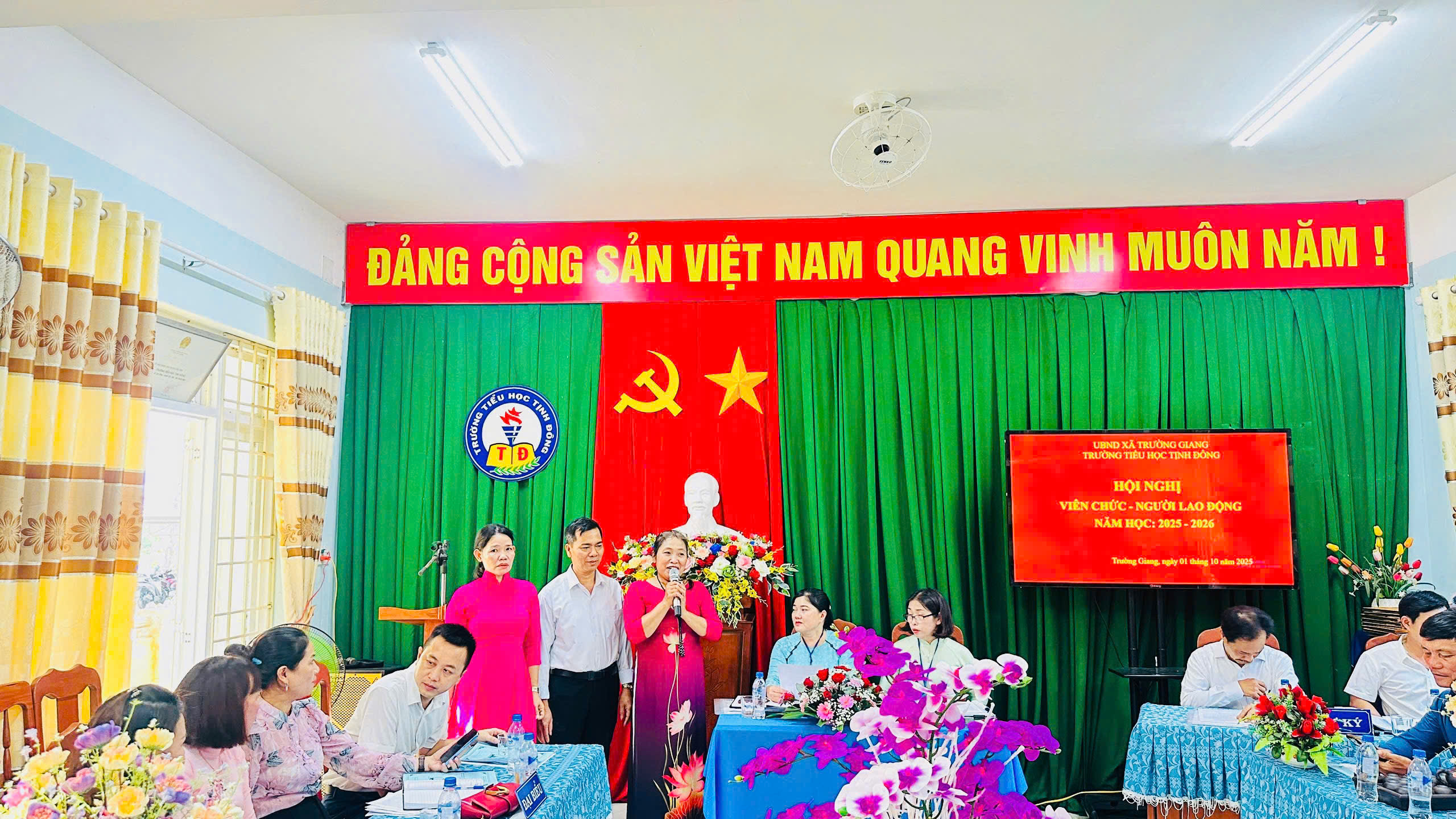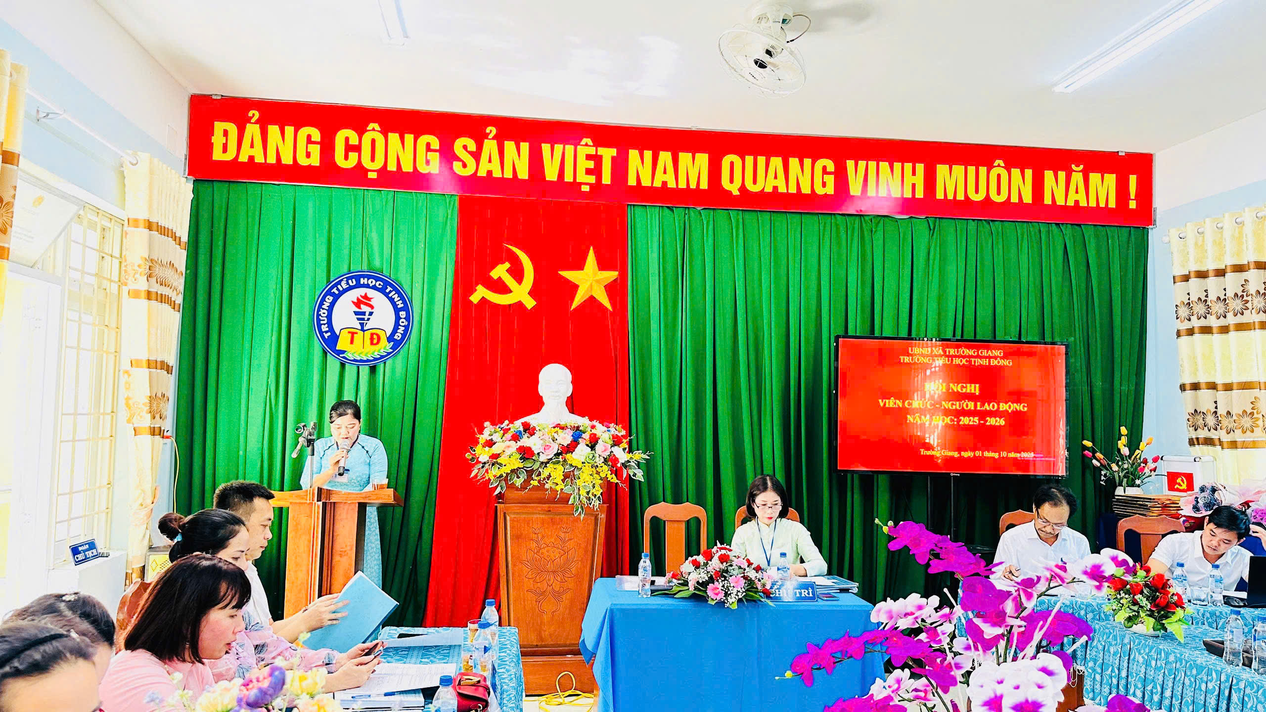 Chiều ngày 01/10/2025 trường TH Tịnh Đông tổ chức Hội nghị CB, VC, người lao động đã thông qua báo cáo, phương hướng nhiệm vụ năm học 2025 – 2026, thông qua quy tắc ứng xử, quy chế dân chủ, quy chế làm việc…bầu ban thanh tra nhân dân, phát động phong trào thi đua, thông qua Nghị quyết hội nghị. Tập thể nhà trường đoàn kết, quyết tâm thực hiện thắng lợi nhiệm vụ năm học 2025-2026.