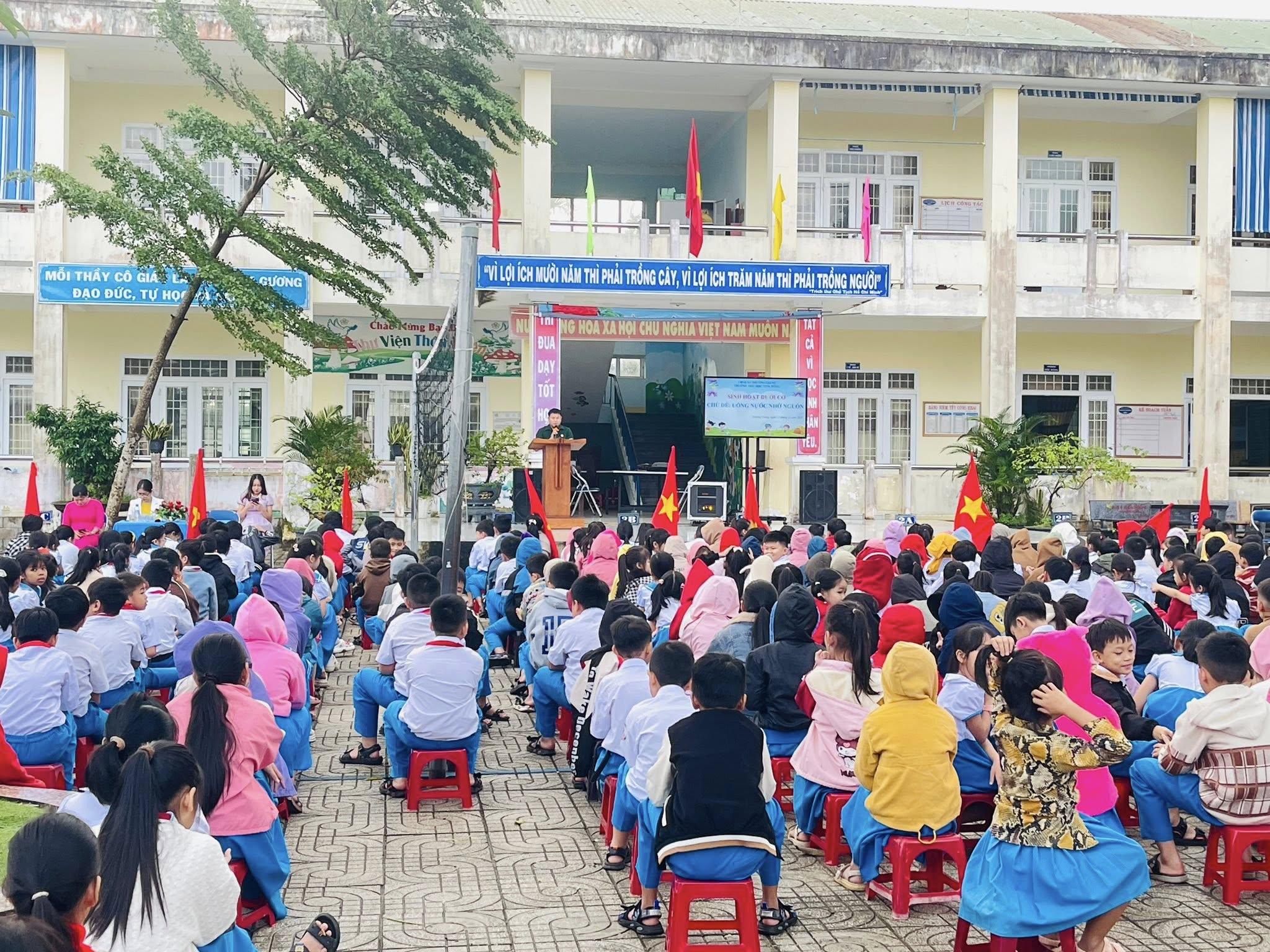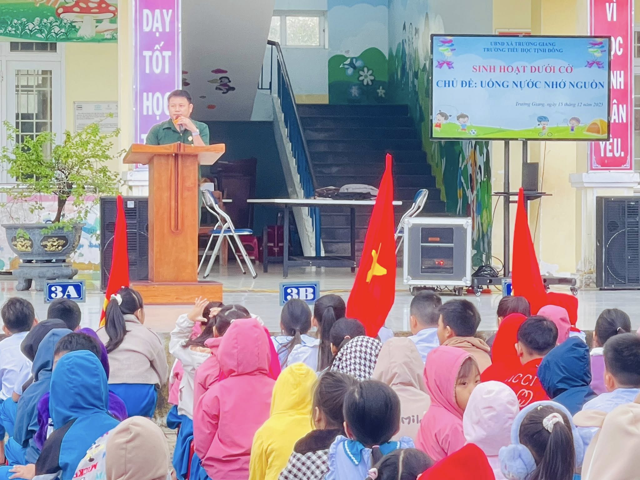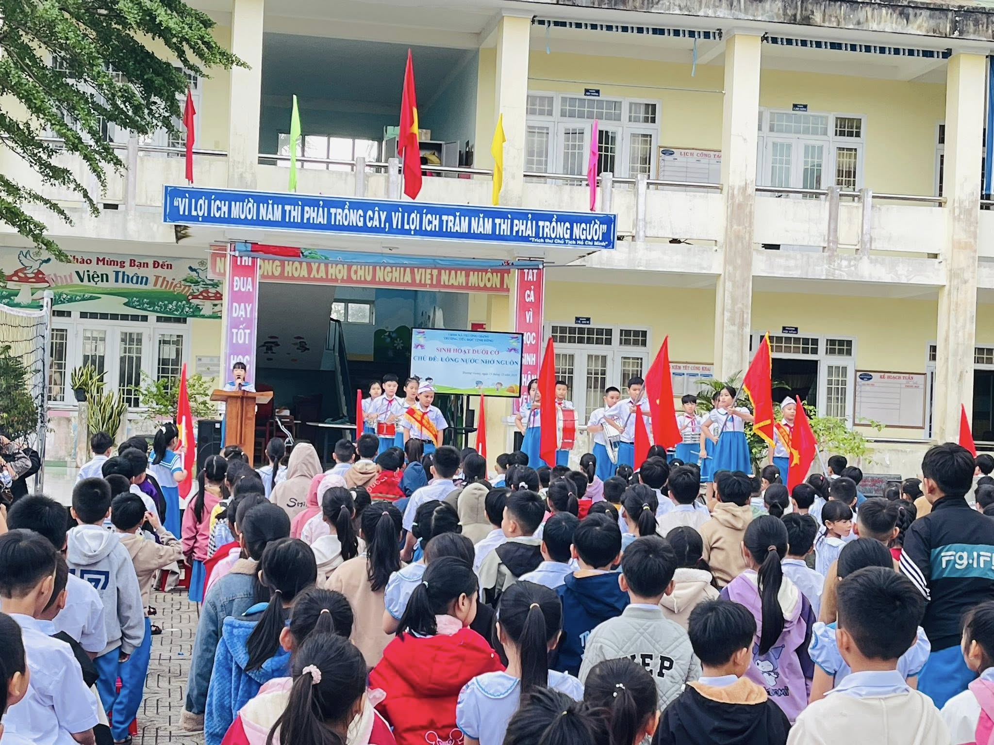 Trong không khí trang nghiêm của buổi lễ chào cờ đầu tuần, Liên đội trường Tiểu học Tịnh Đông đã tổ chức buổi sinh hoạt chủ đề: