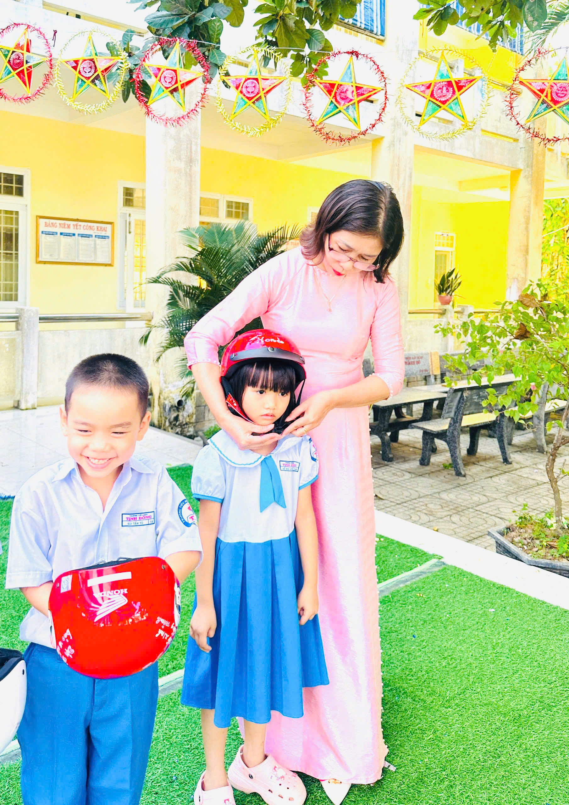 Sáng ngày 6/10/2025 cấp mũ bảo hiểm cho 91 em học sinh lớp 1 năm học 2025 -2026.