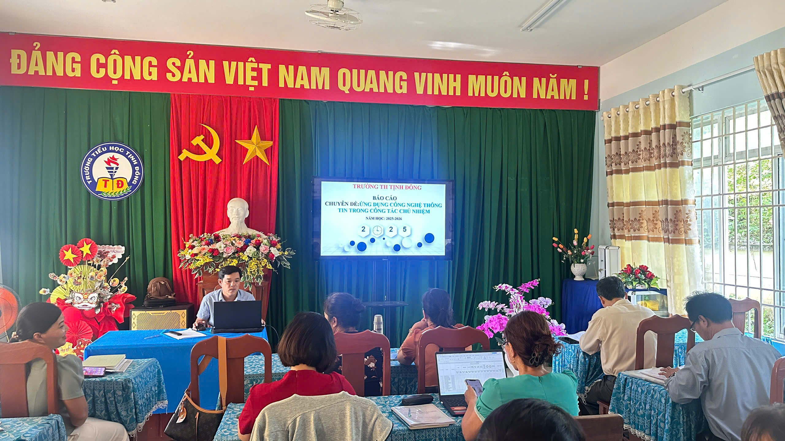 Vào chiều ngày 08 /10/2025 Trường TH Tịnh Đông tổ chức tập huấn chuyên đề về ứng dụng công nghệ thông tin trong công tác chủ nhiệm lớp.
