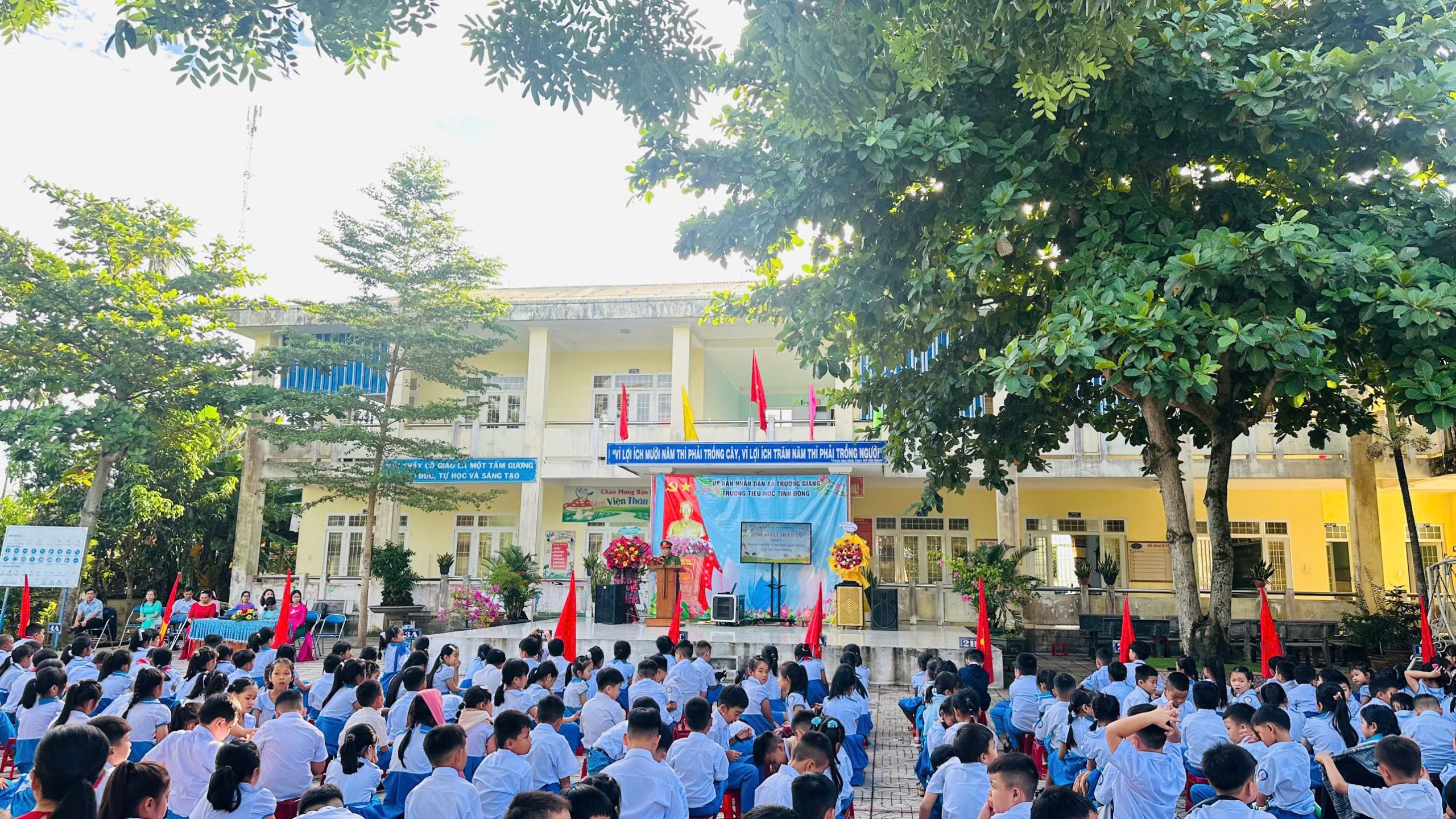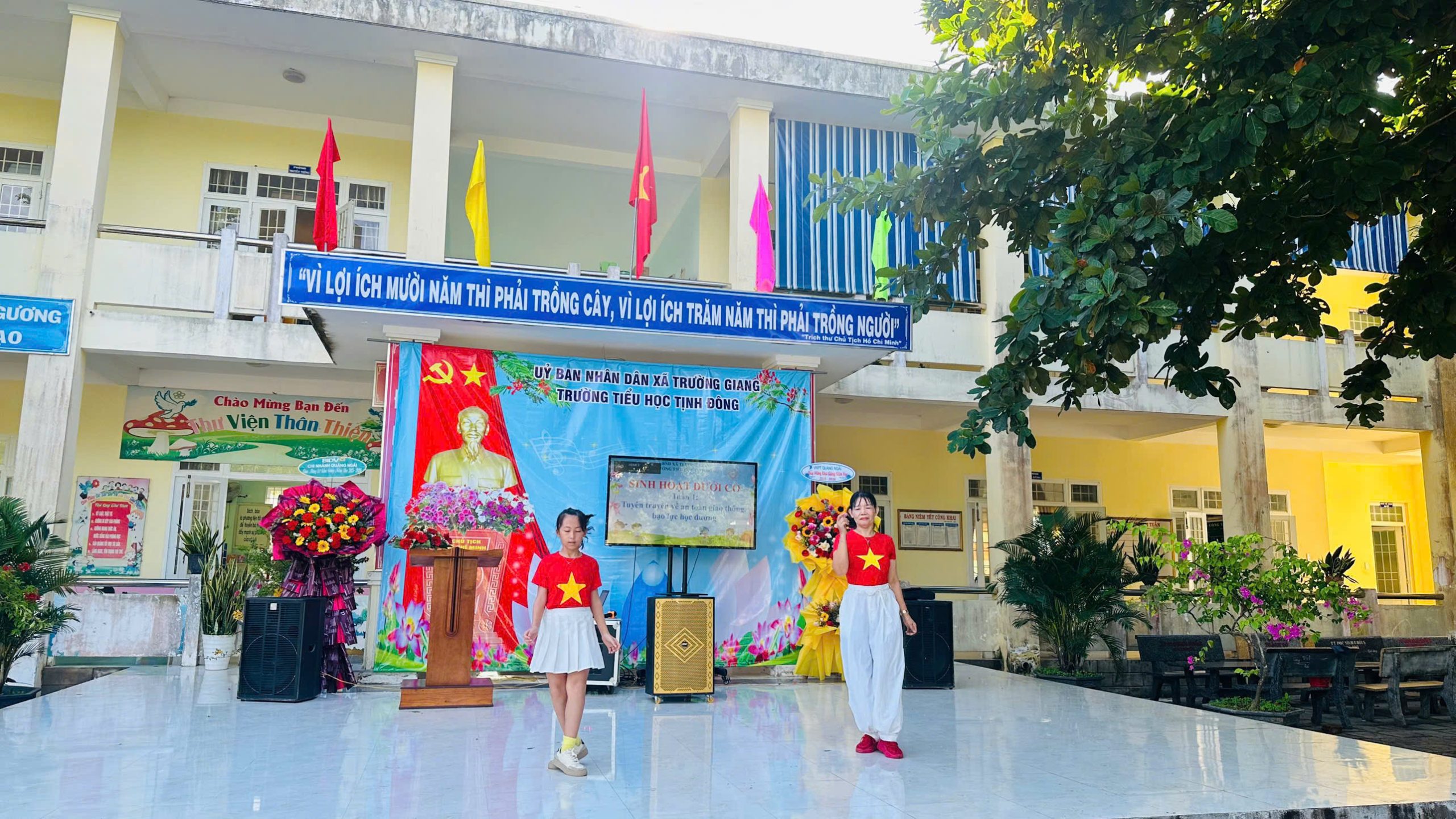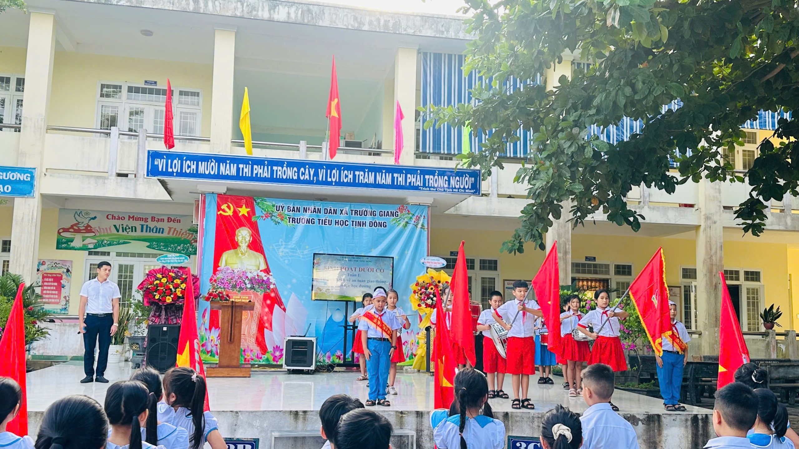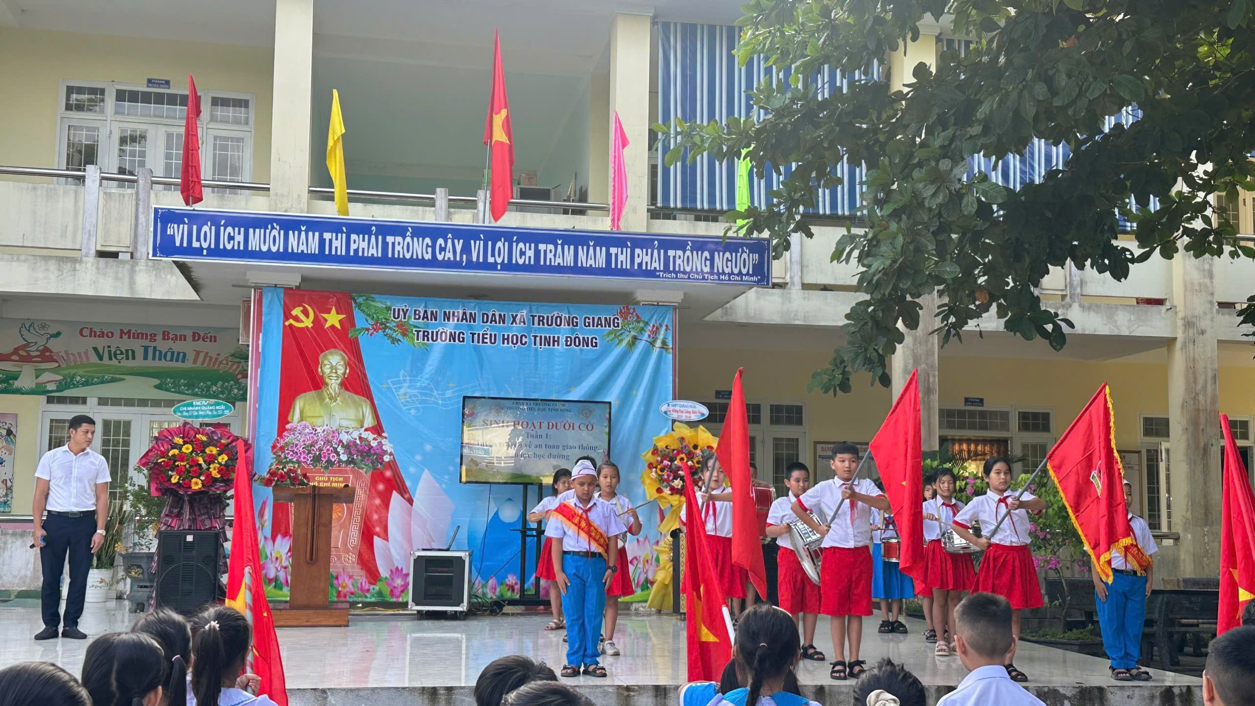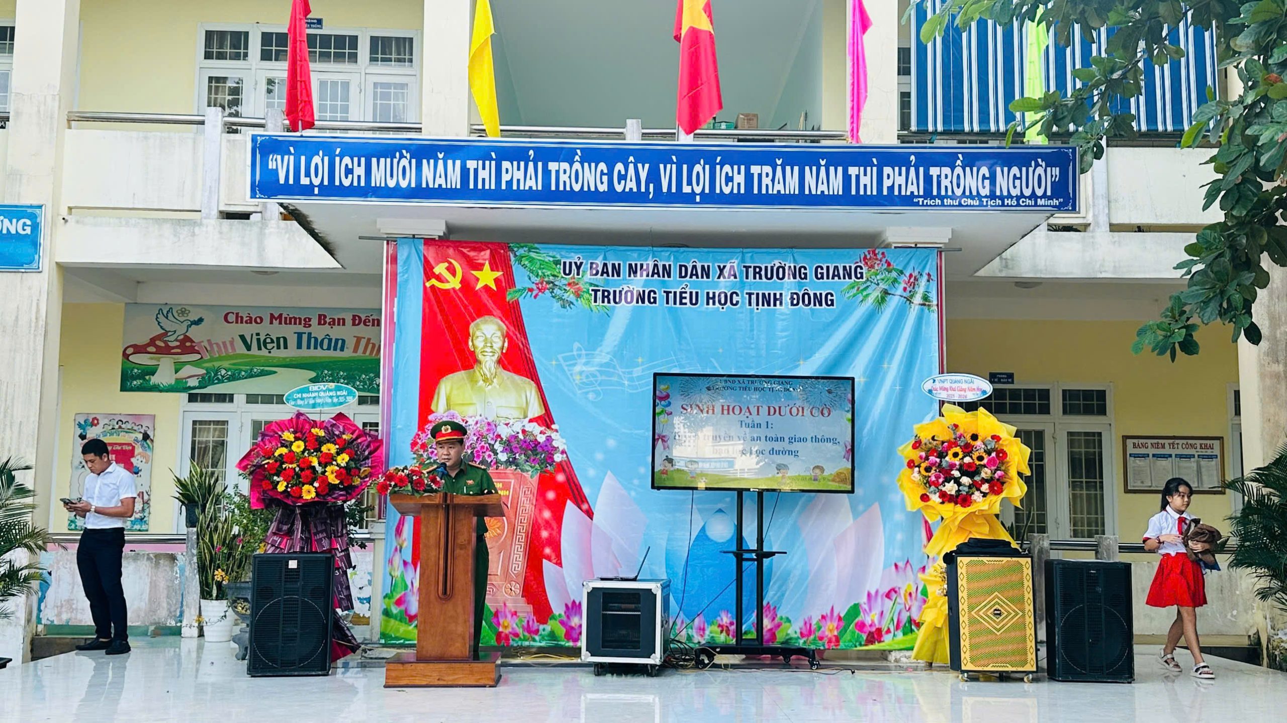Tuần 1: Sáng ngày 8/9/2025 trường tiểu học Tịnh Đông tổ chức sinh hoạt dưới cờ và phối hợp với công an xã Trường Giang tổ chức triển khai ATGT, bạo lực học đường trong trường học năm học 2025 – 2026.